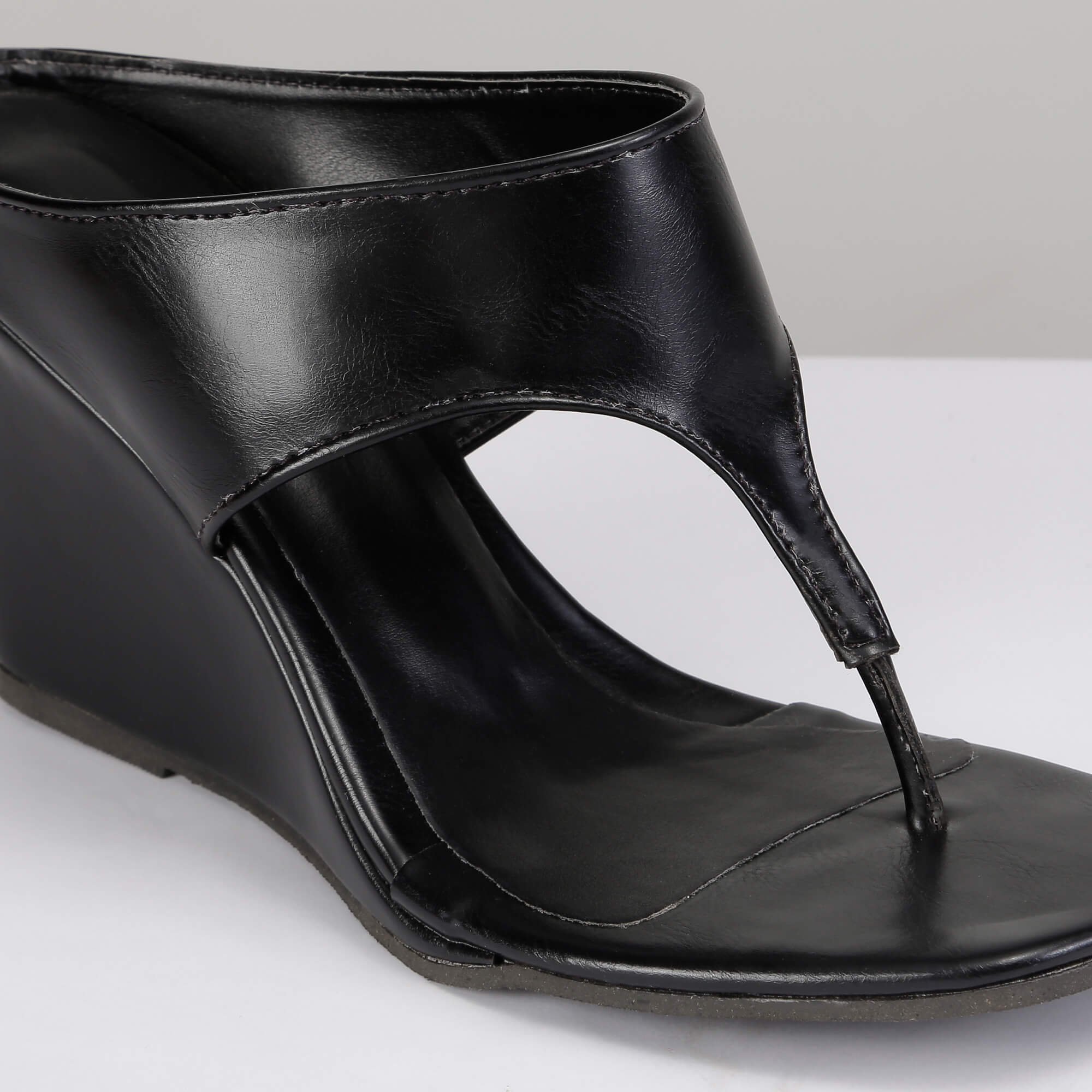 Salto anabela de 9,5 cm com equilíbrio entre altura e conforto.